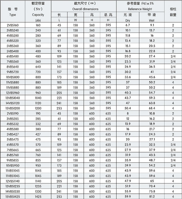 主要用途:為替代進口,本公司研制了符合英國BS標準要求的VBS系列牽引用鉛酸蓄電池,為國內進口電動叉車和電動牽引車配套,也可用于其他電動牽引車輛,本產口還可用于出口。